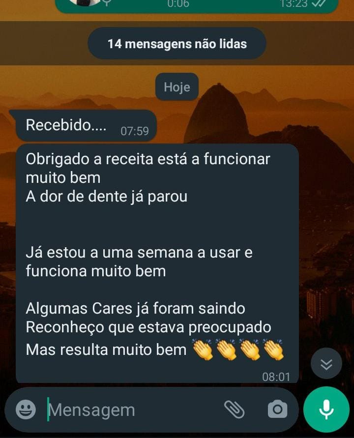 É um produto 100% natural facil de aplicar e de preparo muito simples totalmente confortável e anti-alérgico é um produto super rico em cálcio ajudando assim a fortificar os dentes e proteger da cárie e muitas outras doenças.